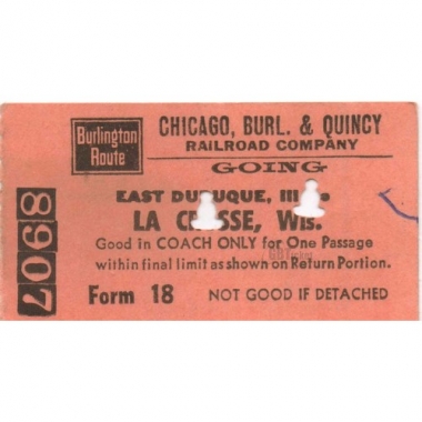 Railway Ticket, USA, Chicago, Burl & Quincy, East Dubuque - La Grosse, Serial No 8907