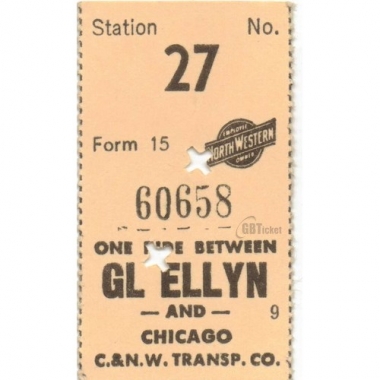 Railway Ticket, USA, Chicago & North Western Transportation Co, Glen Ellyn - Chicago, Serial No 60658