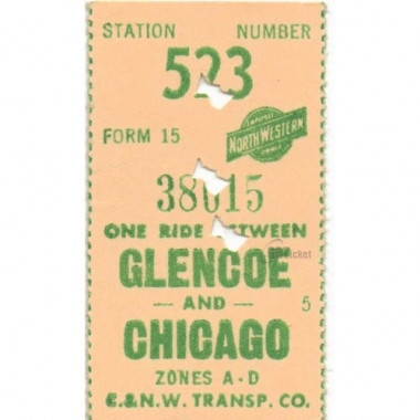 Railway Ticket, USA, Chicago & North Western Transportation Co, Glencoe - Chicago, Serial No 38615