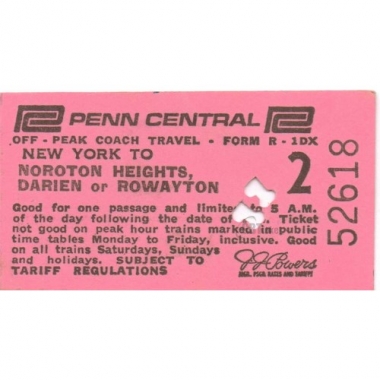 Railway Ticket, USA, Penn Central, New York - Noroton Heights, Serial No 52618
