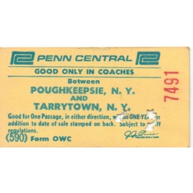 Railway Ticket, USA, Penn Central, Poughkeepsie - Tarrrytown, Serial No 7491