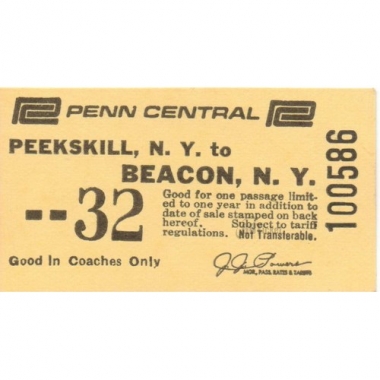 Railway Ticket, USA, Penn Central, Peekskill - Beacon, Serial No 100586