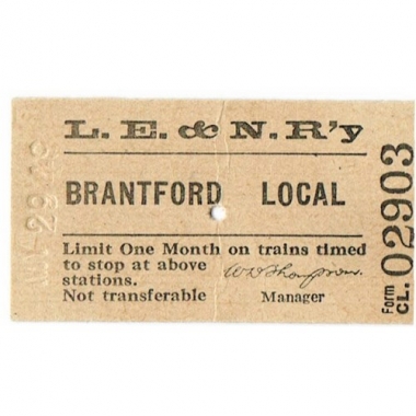 Travel Ticket, Canada, Lake Erie and Northern Railway, Brantford - Local, Serial No 02903