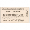 Railway Ticket, USA, California Western Railroad and Navigation Co, Fort Bragg - Northspur, Serial No 9861