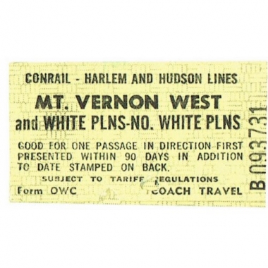 Travel Ticket, USA, Conrail, Mt Vernon West - White Plaines, Serial No 093731