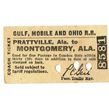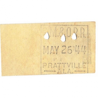 Travel Ticket, USA, Gulf, Mobile and Ohio Railroad, Prattville - Montgomery, Serial No 8581