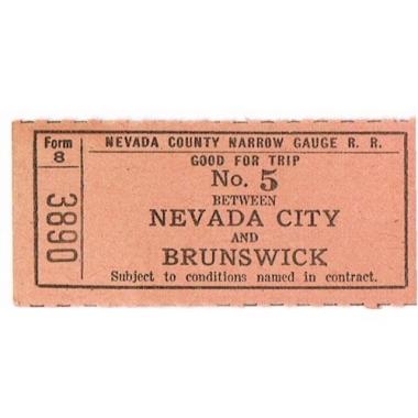 Travel Ticket, USA, Nevada County Narrow Gauge Railroad, Nevada City - Brunswick, Trip No 5, Serial No 3890