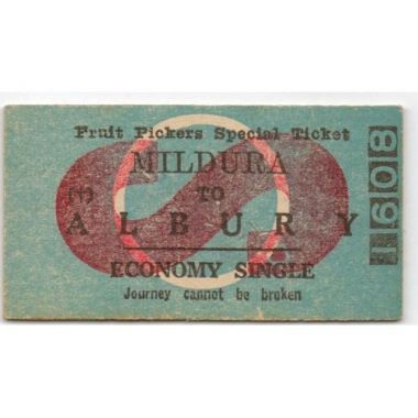Railway Ticket, Australia, Mildura - Albury, Fruit Pickers, Serial No. 1608