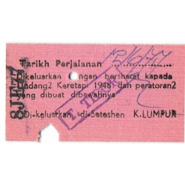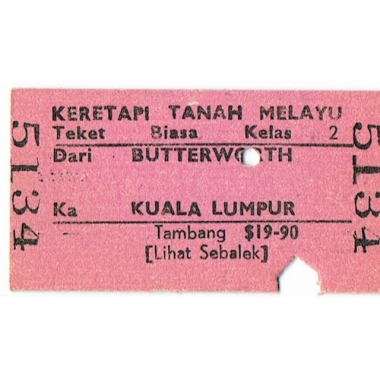Railway Ticket, Malaysia, KTM, Butterworth - Kuala Lumpar, Serial No 5134