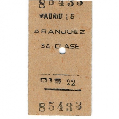 Railway Ticket, Spain, Renfe, Madrid - Aranjuez, Serial No 85433