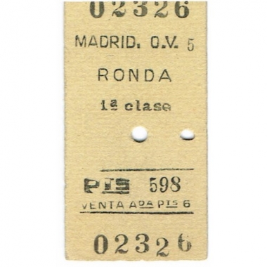 Railway Ticket, Spain, Renfe, Madrid - Ronda, Serial No 02326