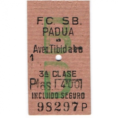 Railway Ticket, Spain, Renfe, Padua - Aven Tibidabo, Serial No 98297