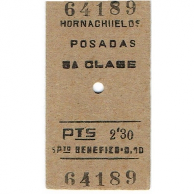 Railway Ticket, Spain, Renfe, Hornachuelos - Posadas, Serial No 64189
