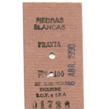 Railway Ticket, Spain, Renfe, Piedras Blancas - Pravia, Serial No 01738