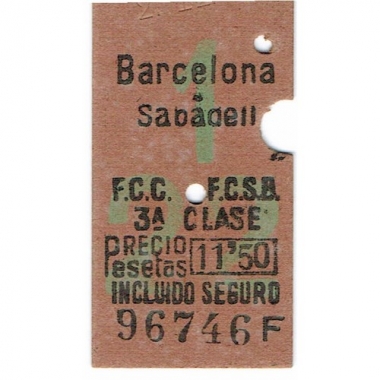 Railway Ticket, Spain, Renfe, Barcelona - Sabadell, Serial No 96746F