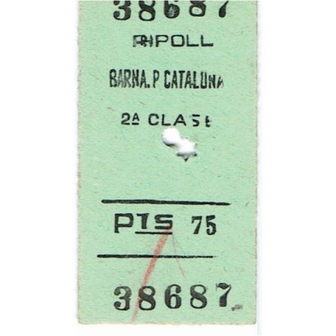 Railway Ticket, Spain, Renfe, Barna P Cataluna, Serial No 38687
