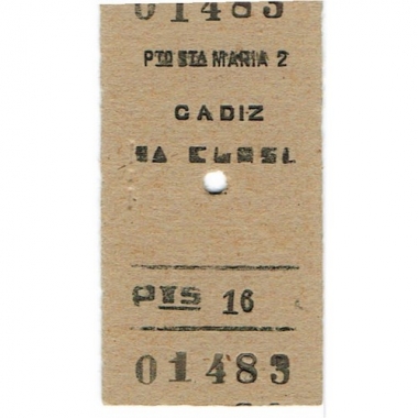 Railway Ticket, Spain, Renfe, Puerto Santo Maria - Cadiz, Serial No 01483