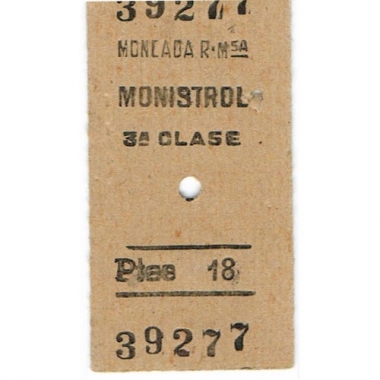 Railway Ticket, Spain, Renfe, Moncada - Monistrol, Serial No 39277