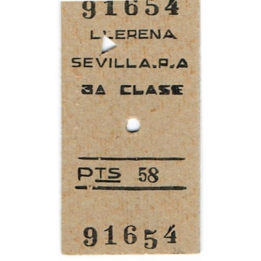Railway Ticket, Spain, Renfe, Llerena - Sevilla, Serial No 91654