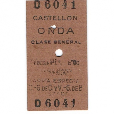 Railway Ticket, Spain, Renfe, Castellon - Onda, Serial No D6041