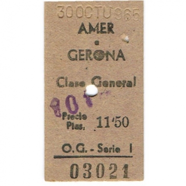 Railway Ticket, Spain, Renfe, Amer - Gerona, Serial No 03021