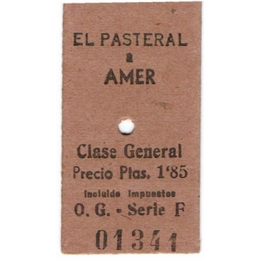Railway Ticket, Spain, Renfe, El Pasteral - Amer, Serial No 01341