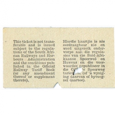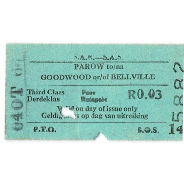 Railway Ticket, South Africa, SAR, Parow - Bellville, Serial No 5882