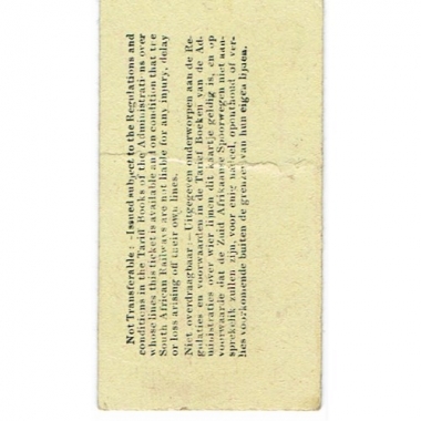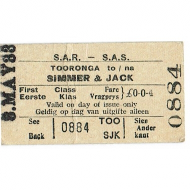 Railway Ticket, South Africa, SAR, Tooronga - Simmer & Jack, Serial No 0884