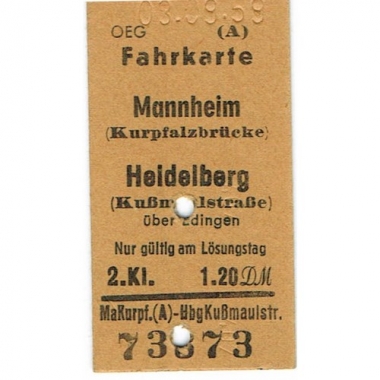 Railway Ticket, Germany, OEG, Mannheim - Heidelberg, Serial No 73373