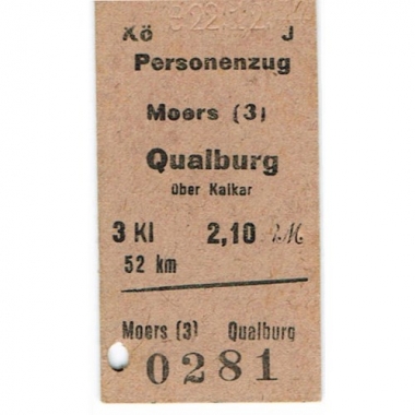 Travel Ticket, Germany, DB, Moers - Qualburg, Serial No 0281