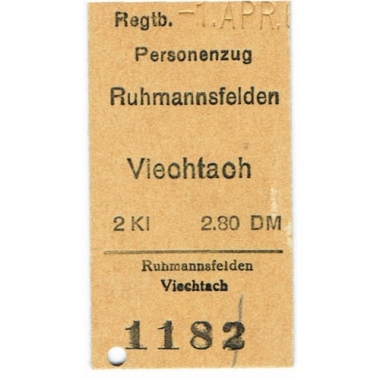 Travel Ticket, Germany, DB, Ruhmannfelden - Viechtach, Serial No 1182