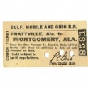 Travel Ticket, USA, Gulf, Mobile and Ohio Railroad, Prattville - Montgomery, Serial No 8581