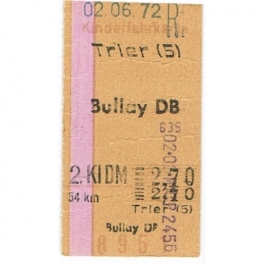 Travel Ticket, Germany, DB, Trier - Bullay DB, Serial No 8951
