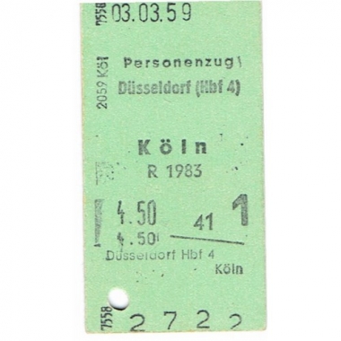Travel Ticket, Germany, DB, Dusseldorf - Koln, Serial No 2722