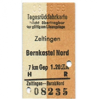 Railway Ticket, Germany, DB, Zeltingen - Bernkastel Nord, Serial No 08235