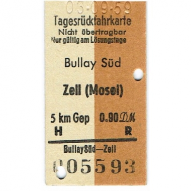 Railway Ticket, Germany, DB, Bullay Sud - Zell (Mosel), Serial No 005593