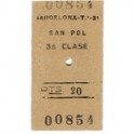 Railway Ticket, Spain, Renfe, Barcelona - San Pol, Serial No 00854
