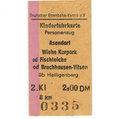 Railway Ticket, Germany, DB, Asendorf - Wiehe Kurpark, Serial No 0335