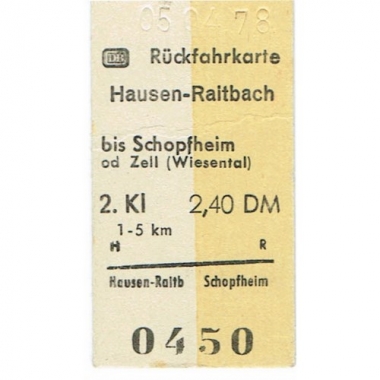 Railway Ticket, Germany, DB, Hausen-Raitbach - , Serial No 0450