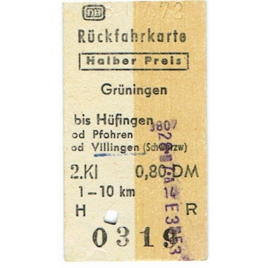 Railway Ticket, Germany, DB, Gruningen, Serial No 0319