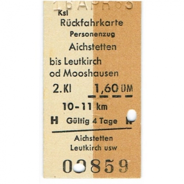 Railway Ticket, Germany, DB, Aichstetten, Serial No 00859