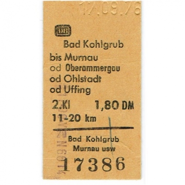 Railway Ticket, Germany, DB, Bad Kohlgrub, Serial No 17386