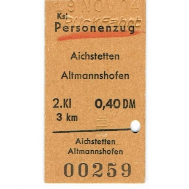 Railway Ticket, Germany, DB, Aichstetten - Altmannshofen, Serial No 00259
