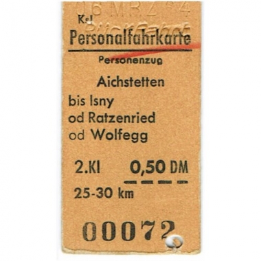 Railway Ticket, Germany, DB, Aichstetten - , Serial No 00072