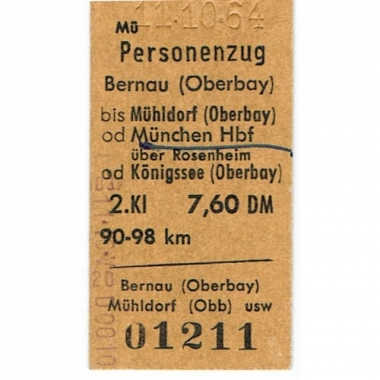 Railway Ticket, Germany, DB, Bernau (Oberbay) - Munchen Hbf, Serial No 01211