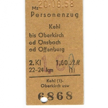 Railway Ticket, Germany, DB, Kehl - , Serial No 6868