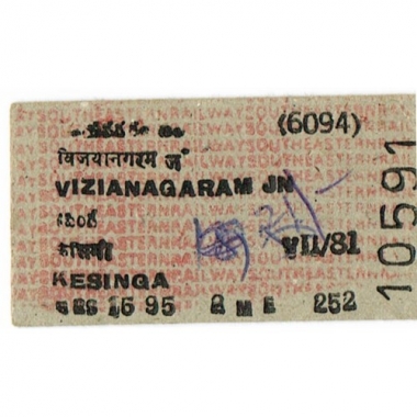Railway Ticket, India, SER, Vizianagaram - Kesinga, Serial No 10591