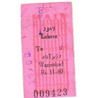Railway Ticket, Pakistan, Lahore - Wazirabad, Serial No 009423