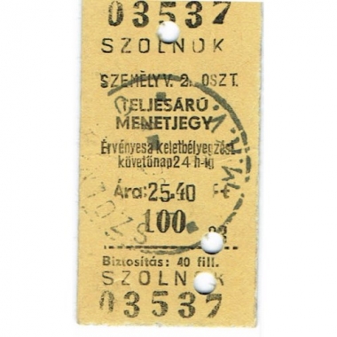 Railway Ticket, Hungary, MAV, Szolnok, Serial No 03537