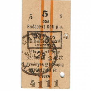 Railway Ticket, Hungary, MAV, Budapest Dell, Serial No 4111